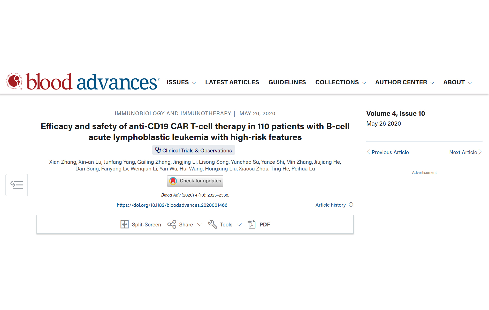 2020年5月26日,國(guó)際血液學(xué)期刊Blood Advances雜志發(fā)表了陸道培醫(yī)學(xué)團(tuán)隊(duì)張弦主任為第一作者 【詳情】