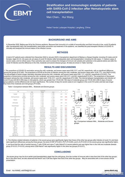 題目: Stratification and Immunologic Analysis of Patients with SARS-CoV-2 Infection after Hematopoietic Stem Cell Transplantation