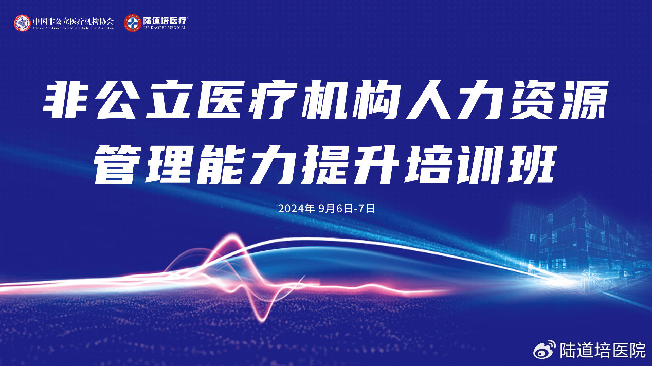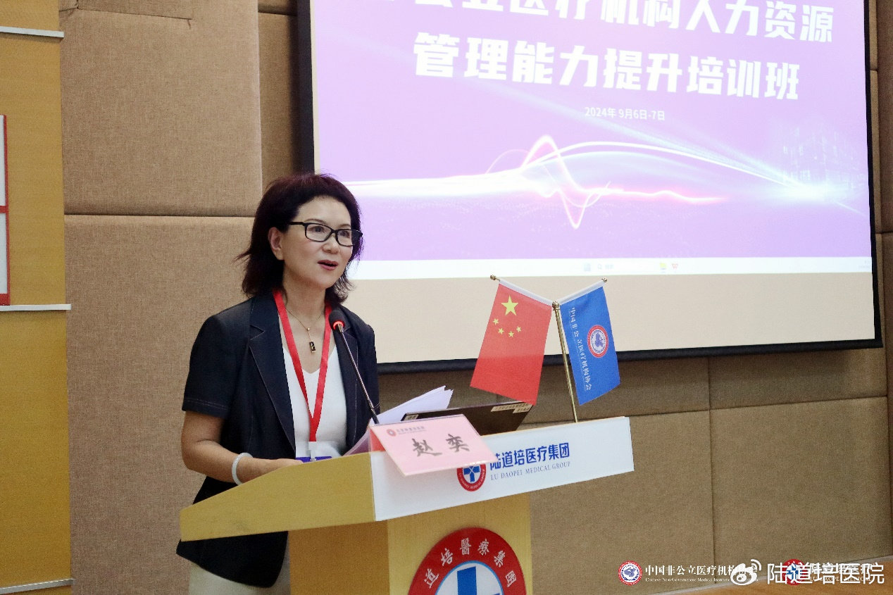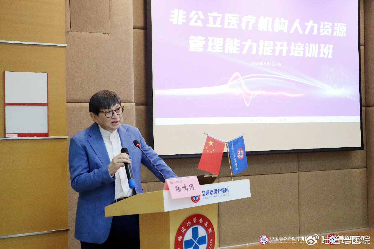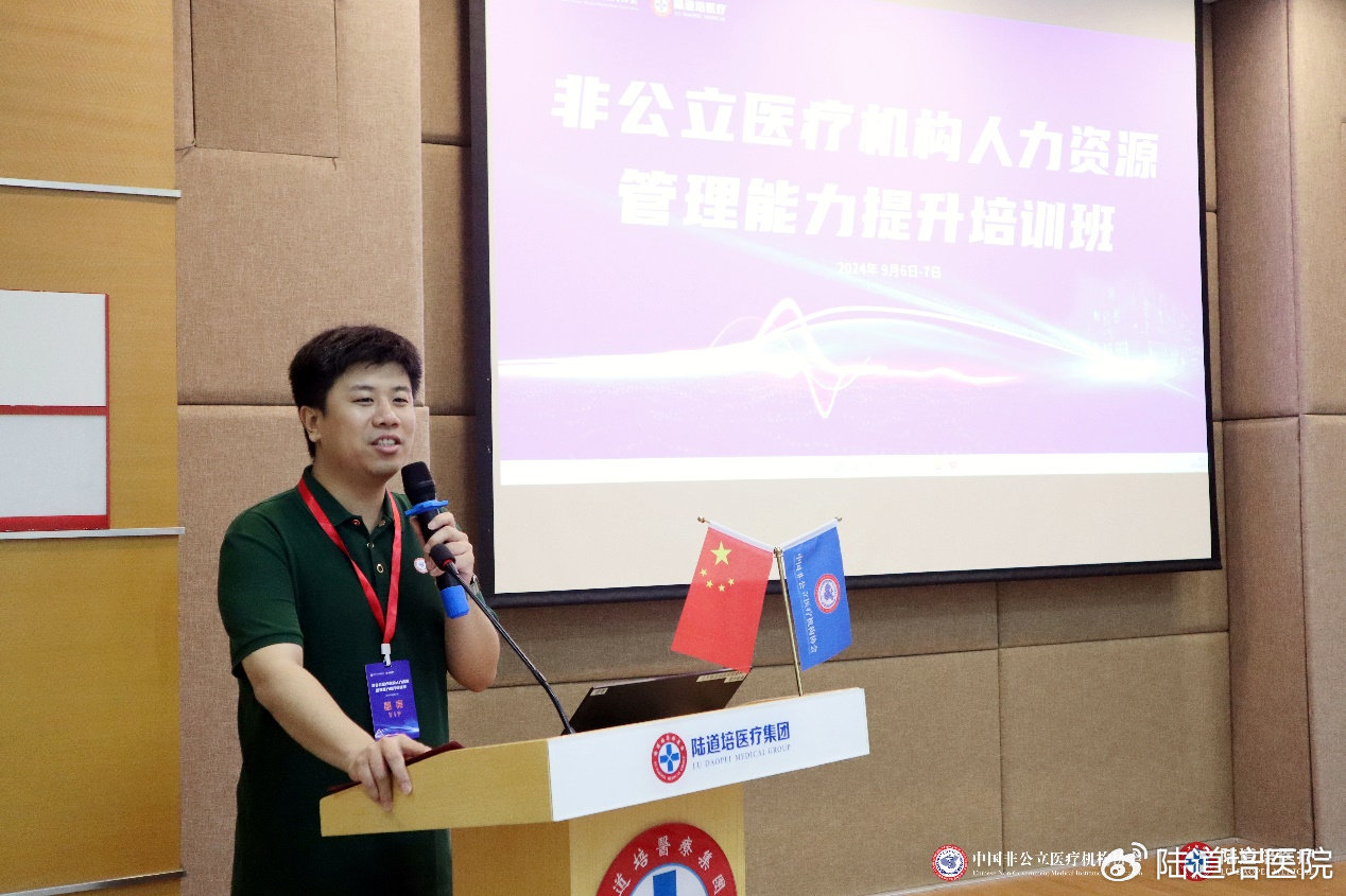 為加強行業(yè)人才鏈建設,進一步推動我國非公立醫(yī)療機構人力資源管理的專業(yè)化、精細化進程,提升行業(yè)整體人才管理水平與招聘效率,構建高效、穩(wěn)定、可持續(xù)發(fā)展的人才梯隊,2024年9月6日-7日,由中國非公立醫(yī)療機構協(xié)會主辦,陸道培醫(yī)療集團承辦,丁香人才提供媒體支持的非公立醫(yī)療機構人力資源管理能力提升培訓班在北京陸道培醫(yī)院順利召開。北京陸道培醫(yī)院運營執(zhí)行院長陸鳴岡、陸道培醫(yī)療集團副總裁/運營總監(jiān)趙奕參加會議并致辭。