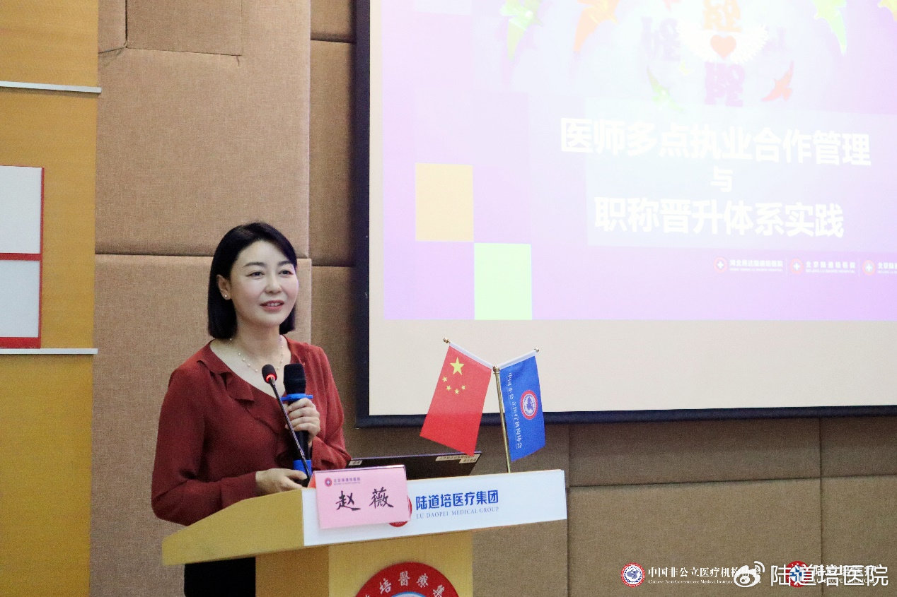 陸道培醫(yī)療集團(三院區(qū))醫(yī)務部主任趙薇就《醫(yī)師多點執(zhí)業(yè)合作管理與職稱晉升體系實踐》進行授課。